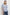 Paris Short-Sleeve Top with Shirred Collar, V-neckline with Ties, Deep Pleats on Sleeves and Elastic at the Sleeve Opening in Blue Floral Colorway, Blues and White - Front Tucked View Featured on Model
