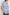 Paris Short-Sleeve Top with Shirred Collar, V-neckline with Ties, Deep Pleats on Sleeves and Elastic at the Sleeve Opening in Blue Floral Colorway, Blues and White - Front Untucked Full Body View Featured on Model